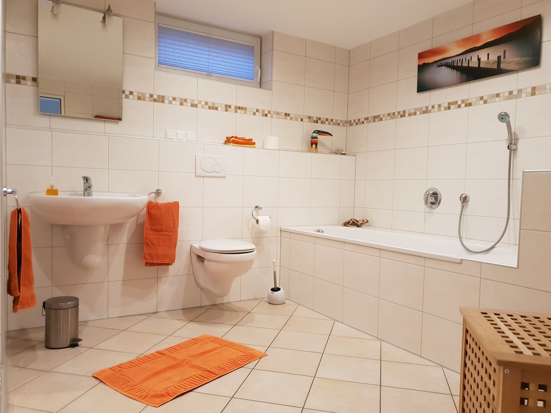 Microwelle, Badezimmer mit Dusche und Badewanne,