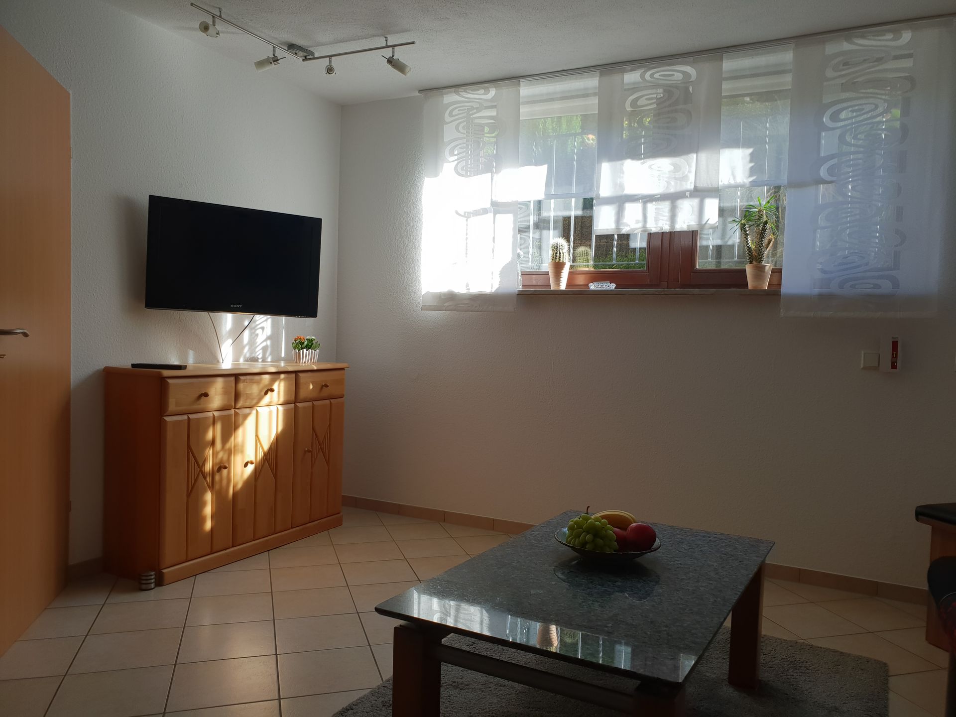 Schlafzimmer für 2 Personen, Wohnzimmer mit einer Schlafcouch für 2 Personen, Essecke, Sat TV,